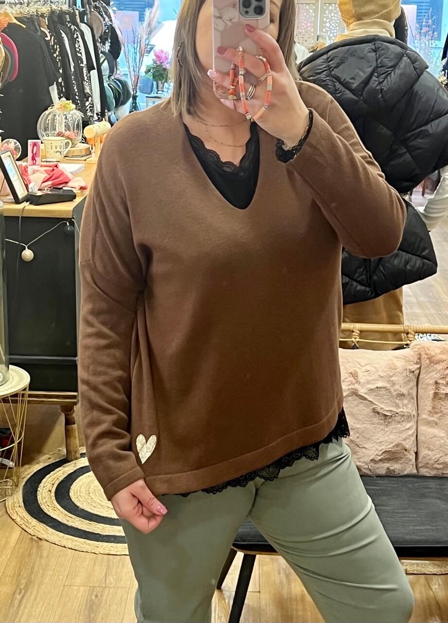 Pull Basique Chocolat Coeur Doré